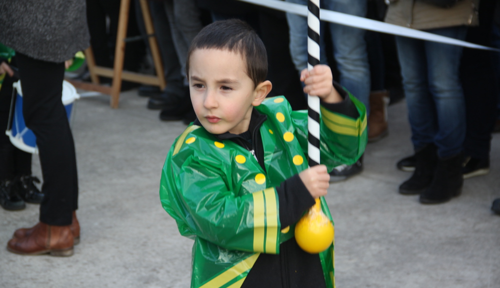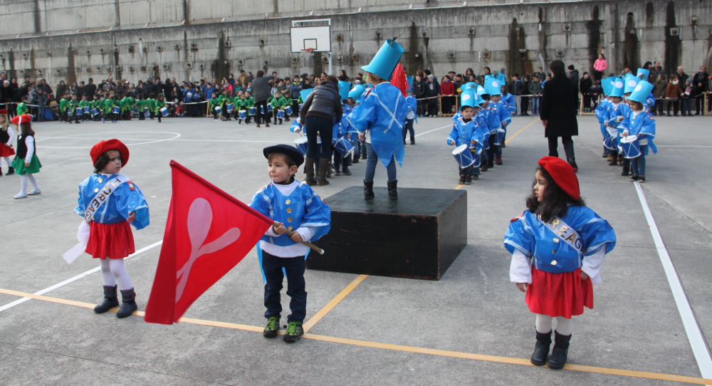 Eguraldiak lagundu digunez desfilea goiko patioan burutu da eta bertan lau talde ezberdinek hartu dute parte.